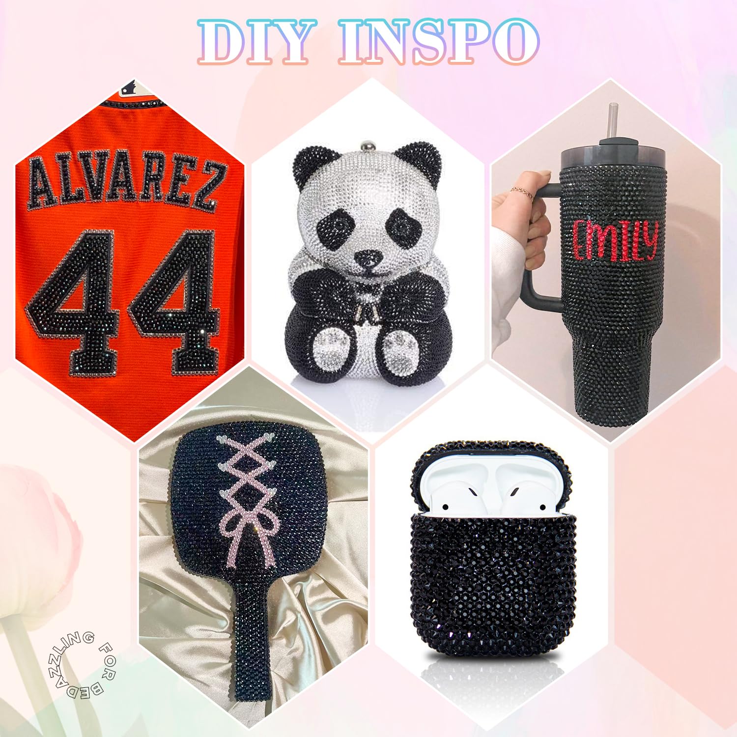 - PACKAGE CONTENT -- Include 1 box with 24 grids, featuring a variety of sizes, approx. 25000 pcs bling-out resin rhinestones (Black). 1 tweezers and 1 pickup pen are included for easily picking up of rhinestones