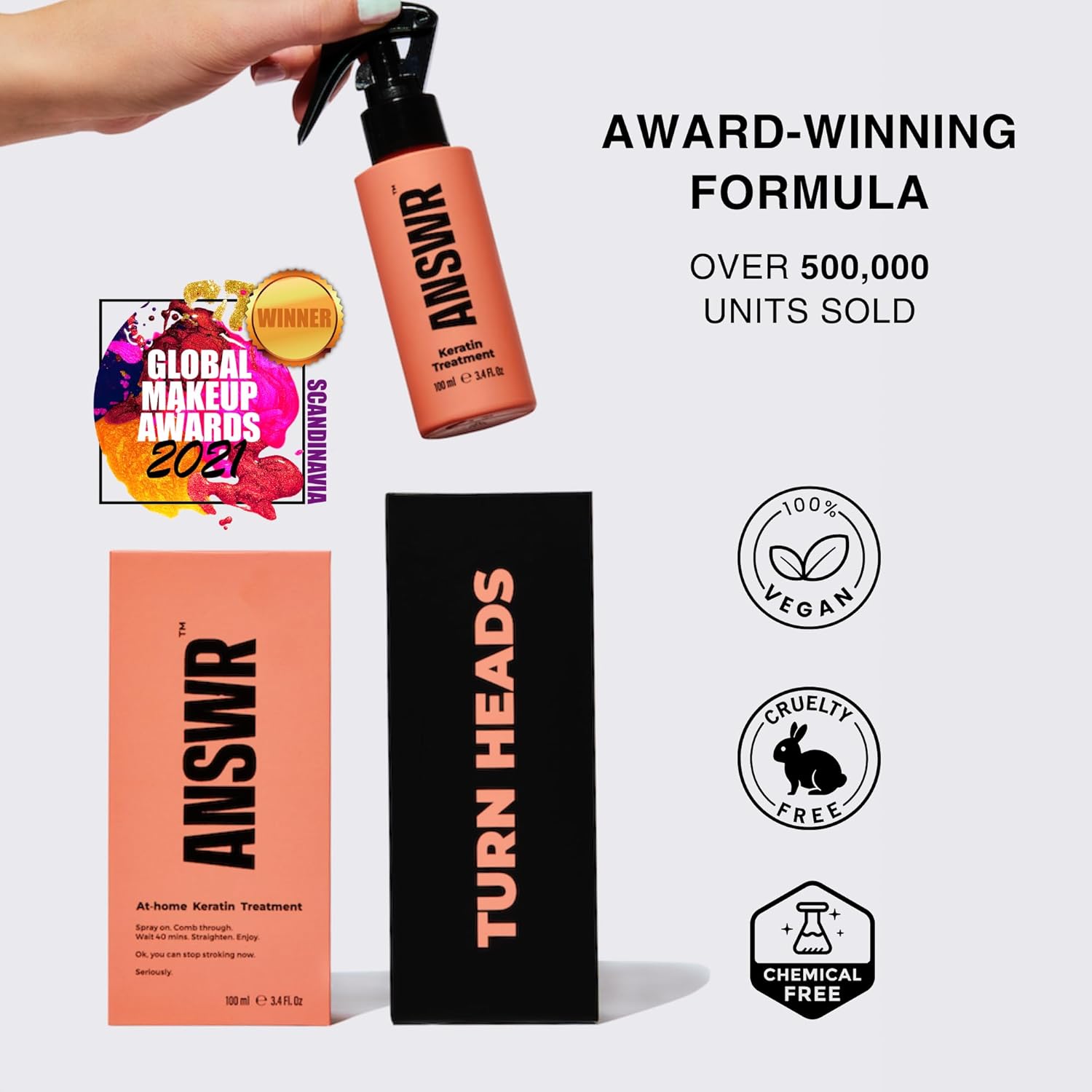 ANSWR At Home Brazilian Keratin Hair Treatment for All Hair Types – Deep Nourishment, Eliminates Frizz, Salon Results At Home, Sulfate-Free, Safe for Colored Hair, 90 Day Lasting results