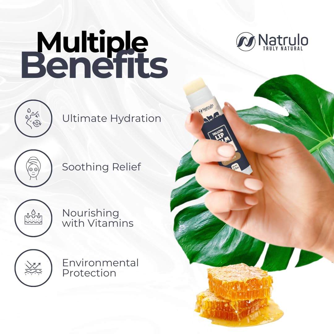 • INTENSELY HYDRATING FORMULA: Immerse your lips in moisture with our grass-fed organic beef tallow lip balm. Crafted with natural fats, akin to those in human skin, it maintains your lips' moisture barrier for enduring hydration and velvety softness.
