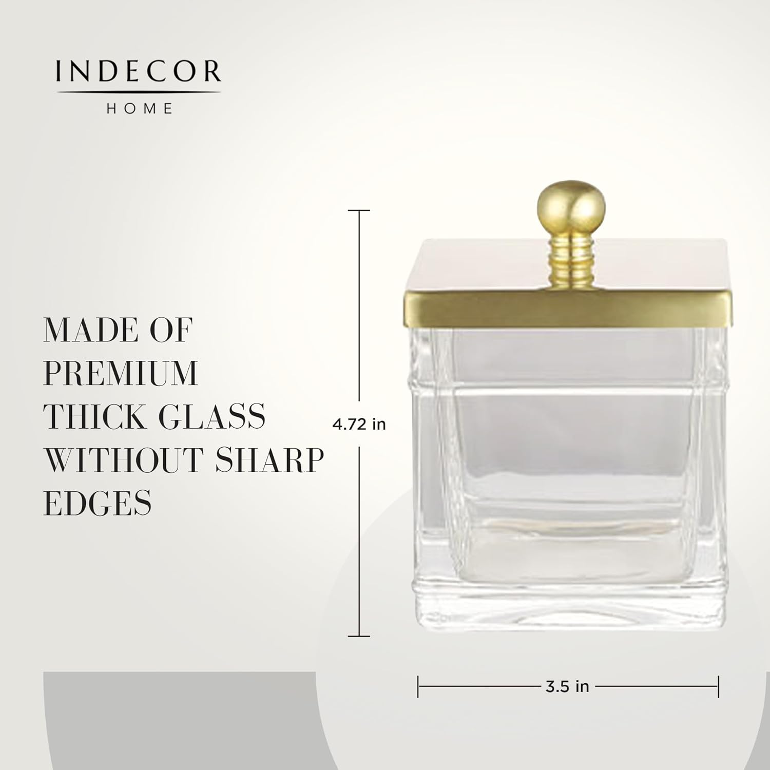 Apothecary Glass Cotton Jar Holder Brushed Gold Stainless Steel Lid, Elegant Bathroom Storage Canister for Qtips, Cotton Balls, Floss, Makeup Organizer, Vanity Bathroom Organization