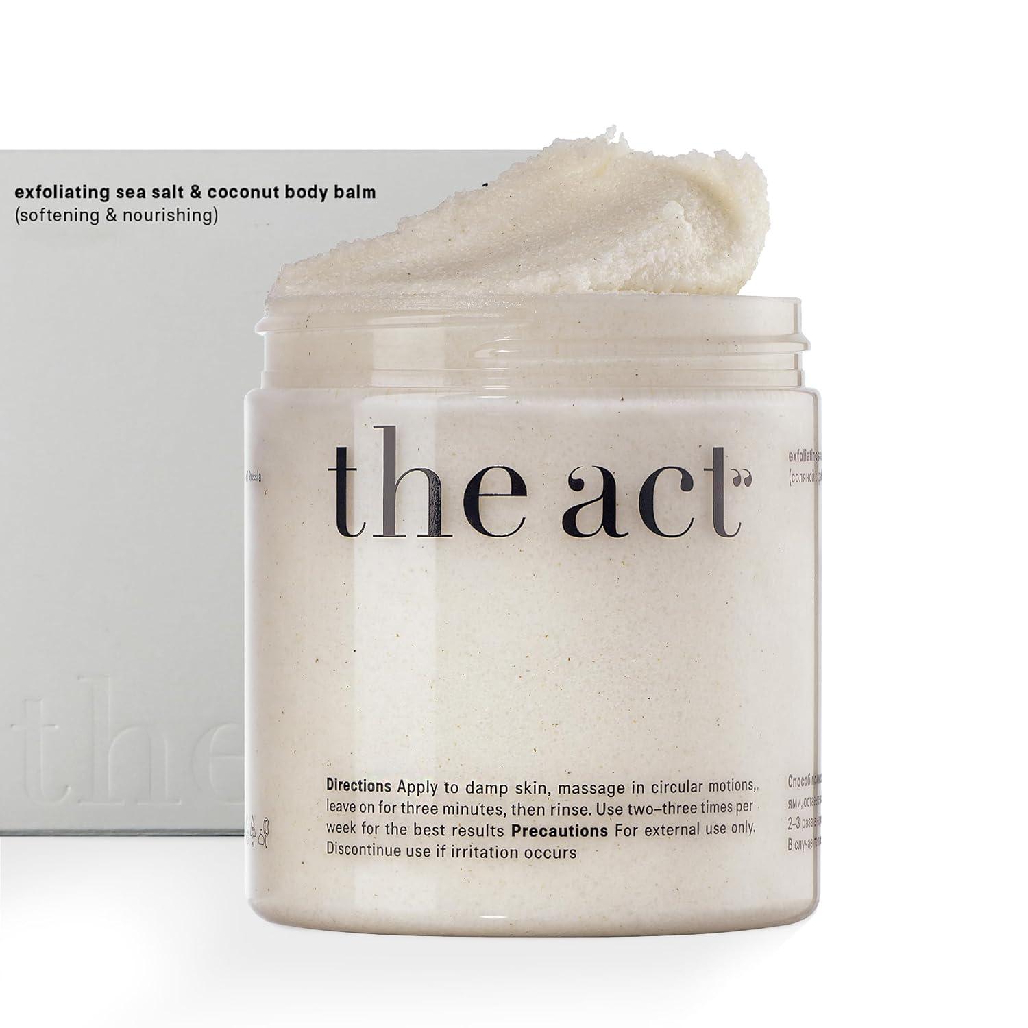 - š„„ Natural Coconut Body Scrub: The act exfoliating scrub features only natural ingredients, including coconut shavings and fine sea salt, which effectively remove dead skin cells, unclog pores, and facilitate the deep penetration of nourishing components.