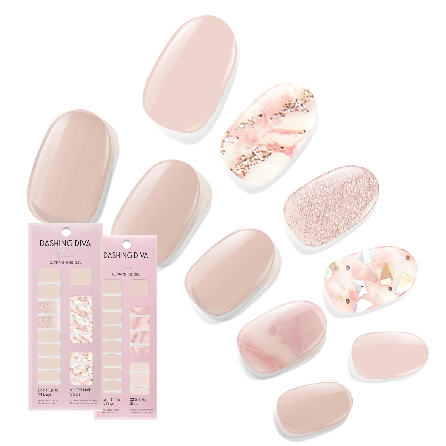 • Includes: 2 x Gel Strip Sets. Each set includes 32 gel manicure strips (20 base color, 12 accent), 1 prep pad, 1 nail file. Easily remove nail strips with nail oil or acetone