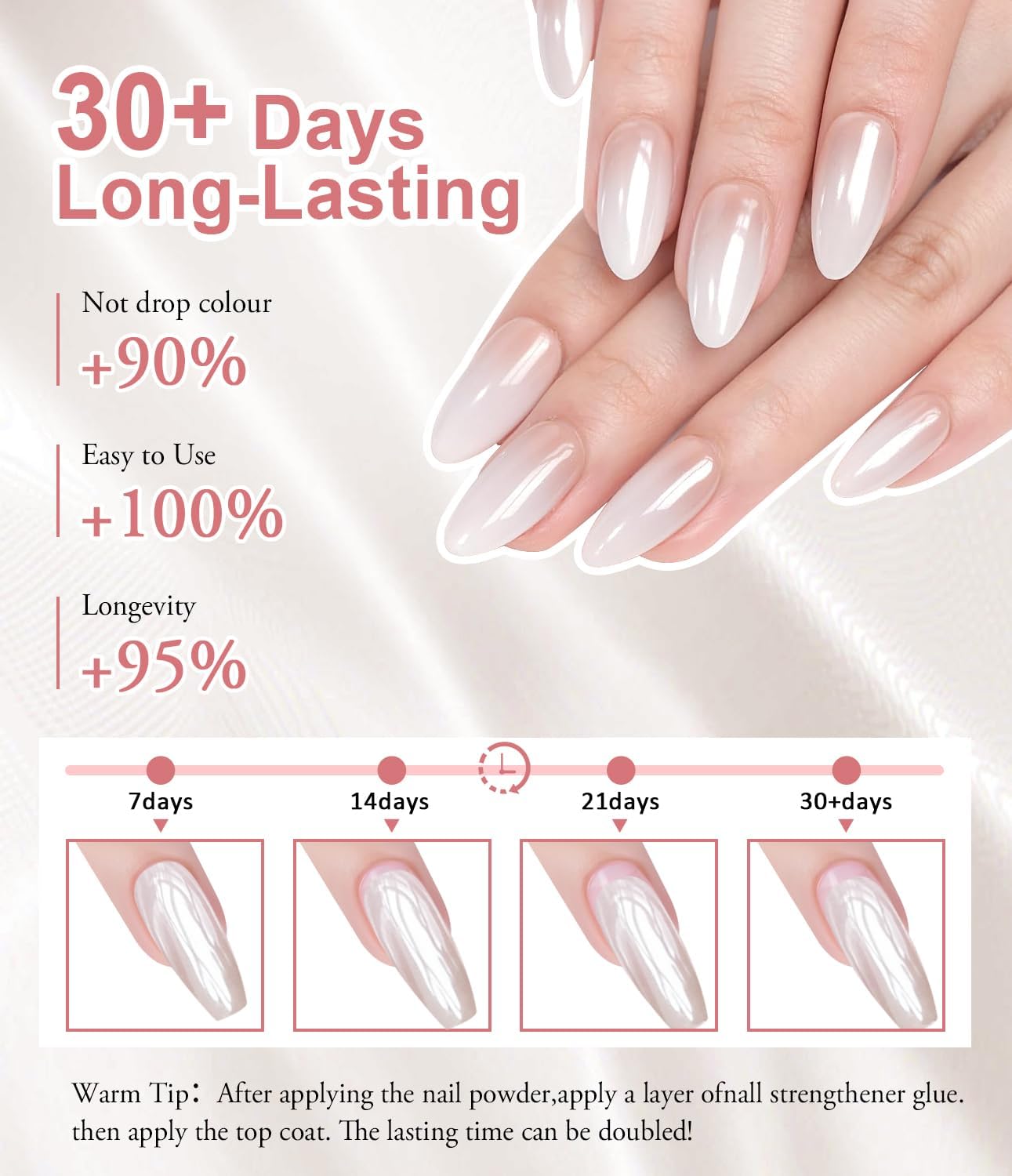- Distinctive Pearl Chrome Powder: Our powder is a newly upgraded super transparent pearl chrome nail powder. The brightness and shiny is better than the old version, this powder is non-toxic, harmless, especially durable, vegan and harmless. Elevate your nail art with our superior quality chrome powder set that effortlessly creates mesmerizing mermaid chrome effects.