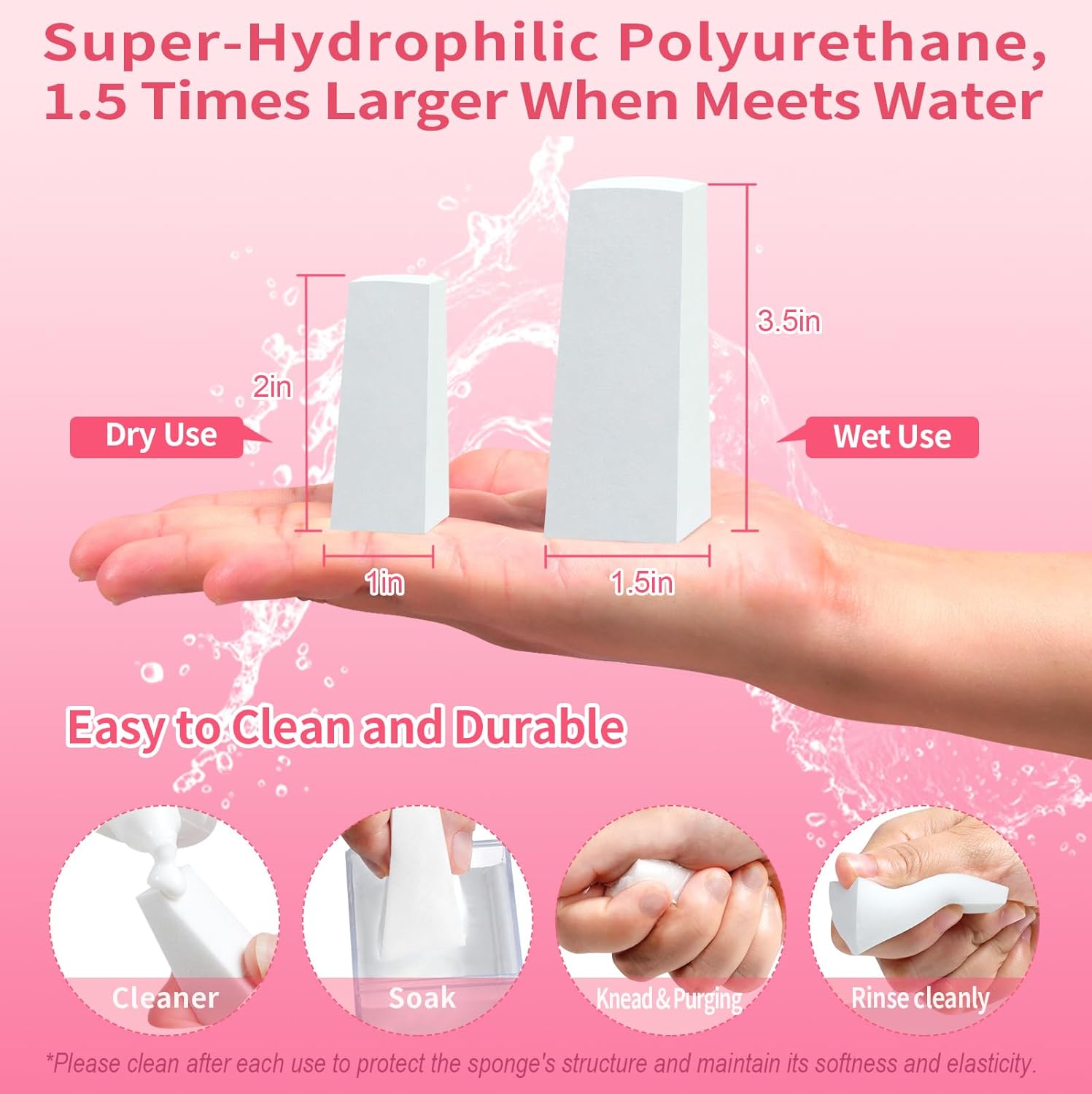- New and Perfect Version: Our foundation sponge is made of hydrophilic polyurethane, which is soft, highly elastic, thicker, and easier to grip for makeup application. With an upgraded cutting technique, it tears apart easily for daily use, featuring a smooth surface that wonβt feel rough or fragile, and is free from irritating odors. It has two beautiful protective pouches to protect it from damage and dirt.