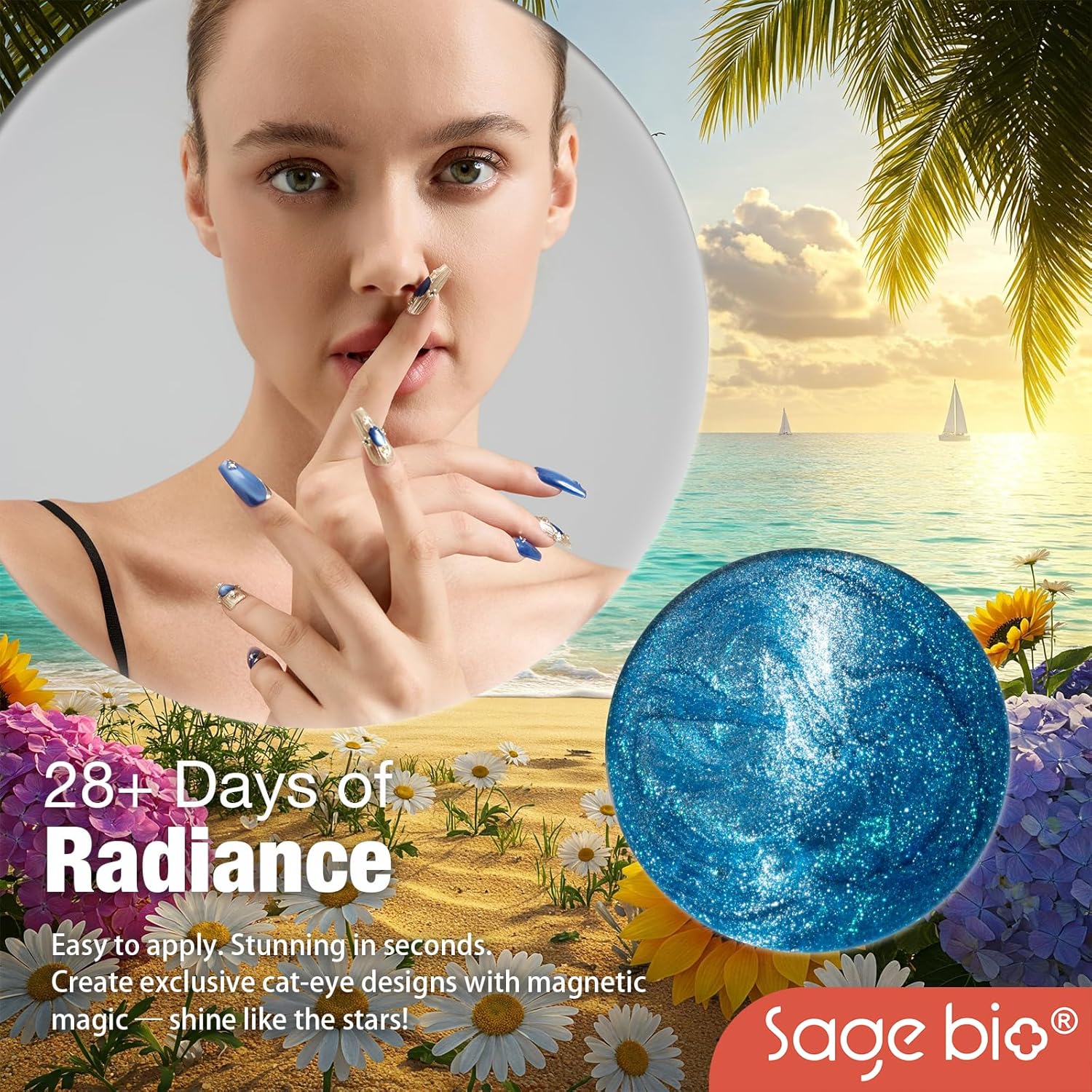- Captivating 3D Cat Eye Effect: Create mesmerizing, multi-dimensional designs with SAGEBIO's cat eye gel polish. The included magnet stick helps you achieve a dazzling 3D magnetic effect that shifts beautifully with light.