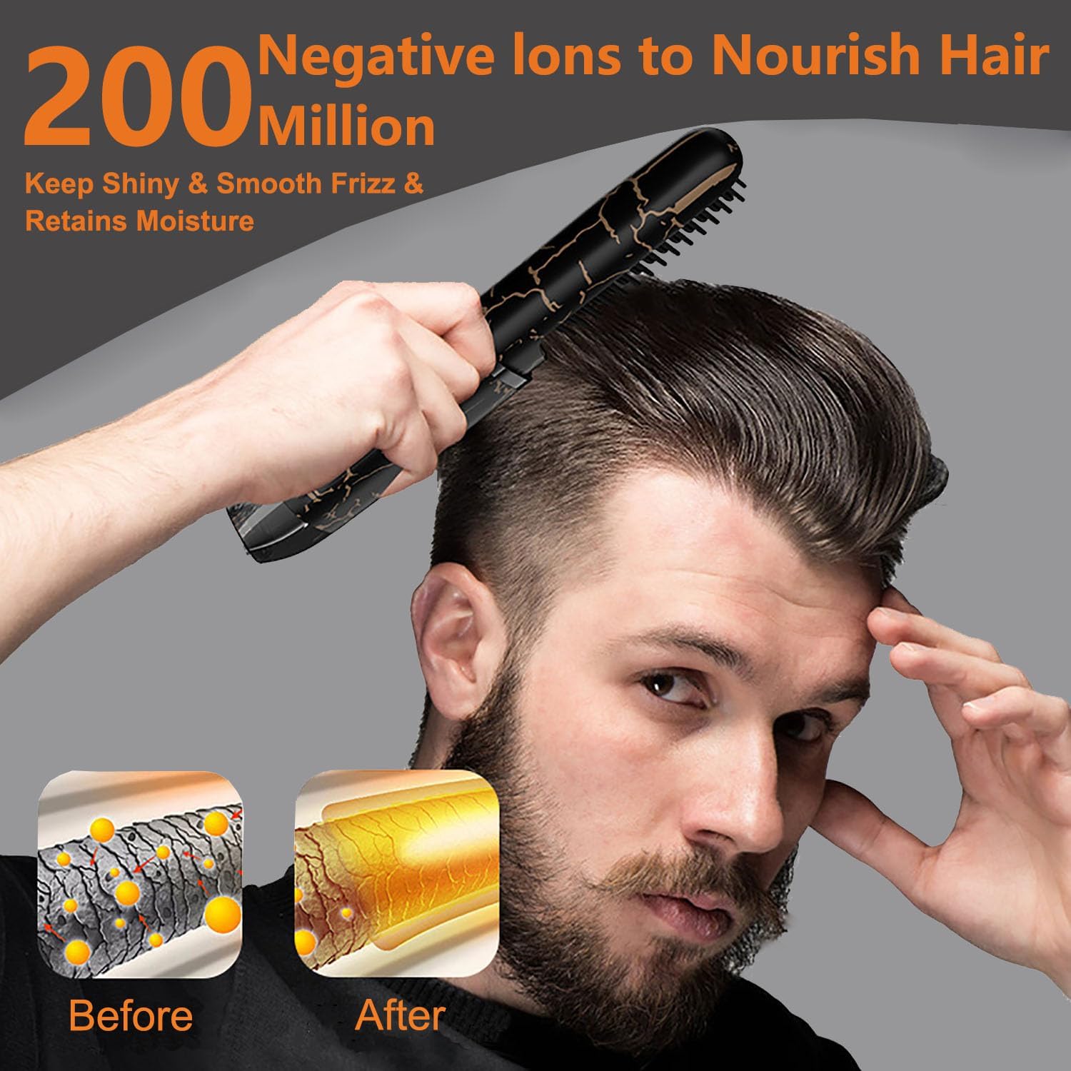 - 【Ionic Technology for Healthier】Our beard brush emit high levels of negative ions to neutralize static electricity, improve frizz and lock in moisture. This helps minimize heat damage, leaving your hair smooth, shiny, and healthy-looking.