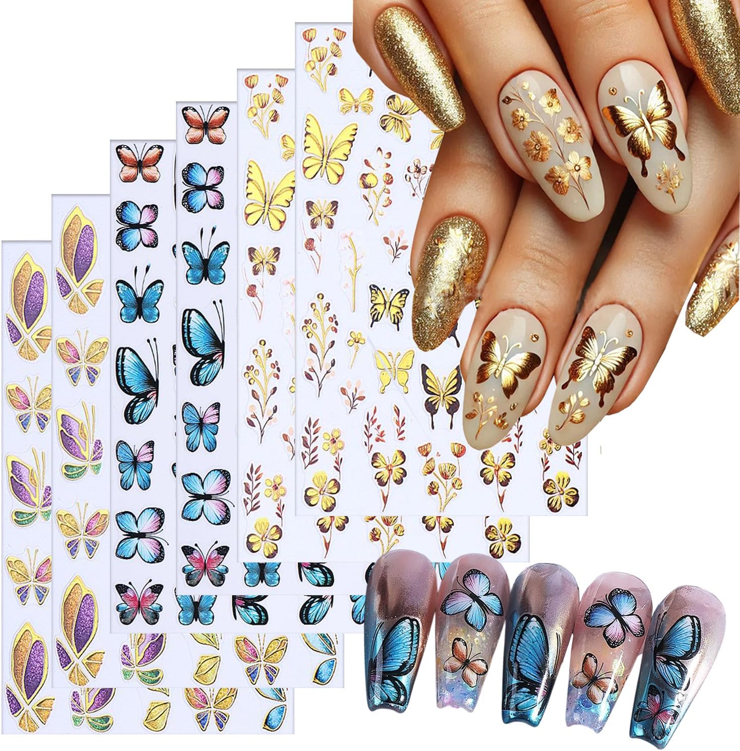 - Quantity๏ผYou will get 6 sheets butterfly nail art adhesive stickers, each paper measure 3.5 x 2.5 inches(9 x6.5cm). Gold blue butterflies patterns for your choice, these nail stickers are perfect for matching other nail art