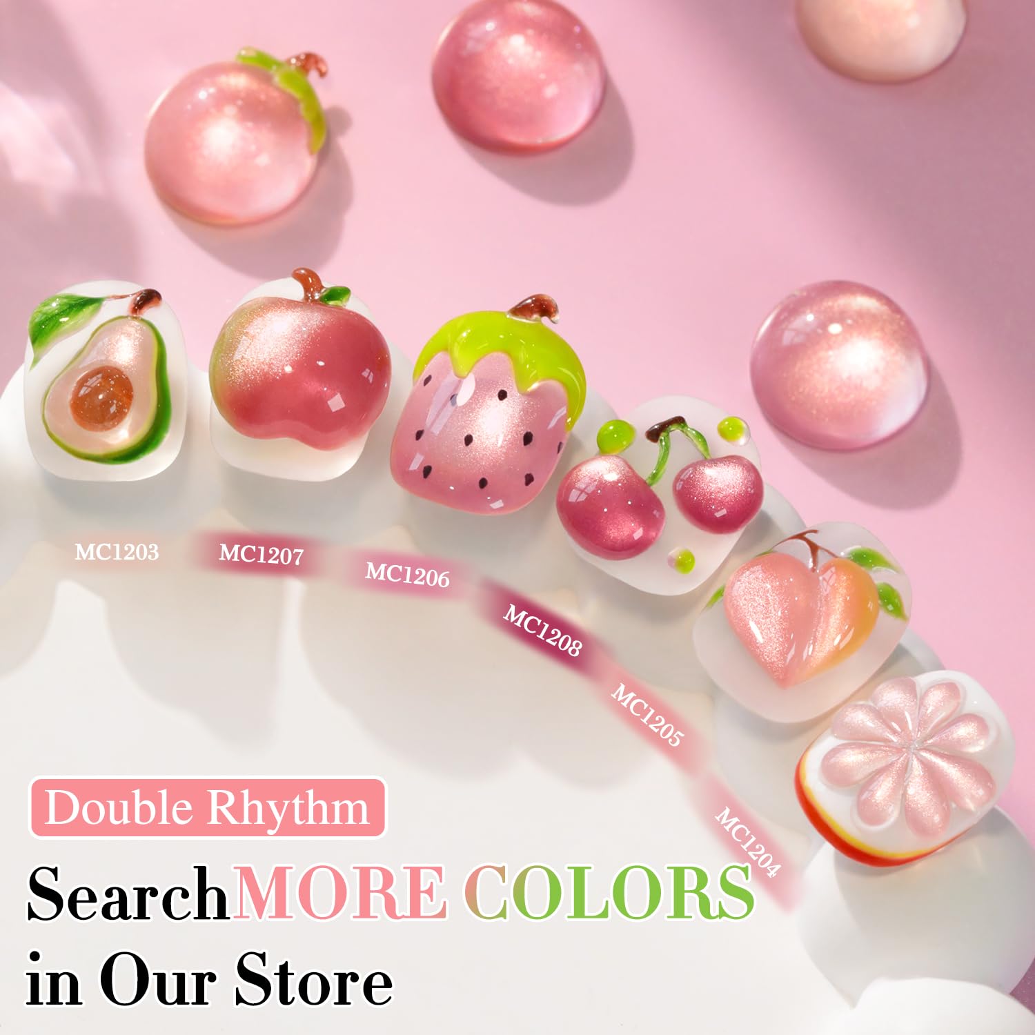 Double Rhythm 0.5 OZ Cat Eye Gel Polish with Magnet 15ML Holographic Glitter Shimmer Translucent Jelly Color Magnetic Nail Polish Salon DIY at Home (Fruit Orange Pink-MC1205)
