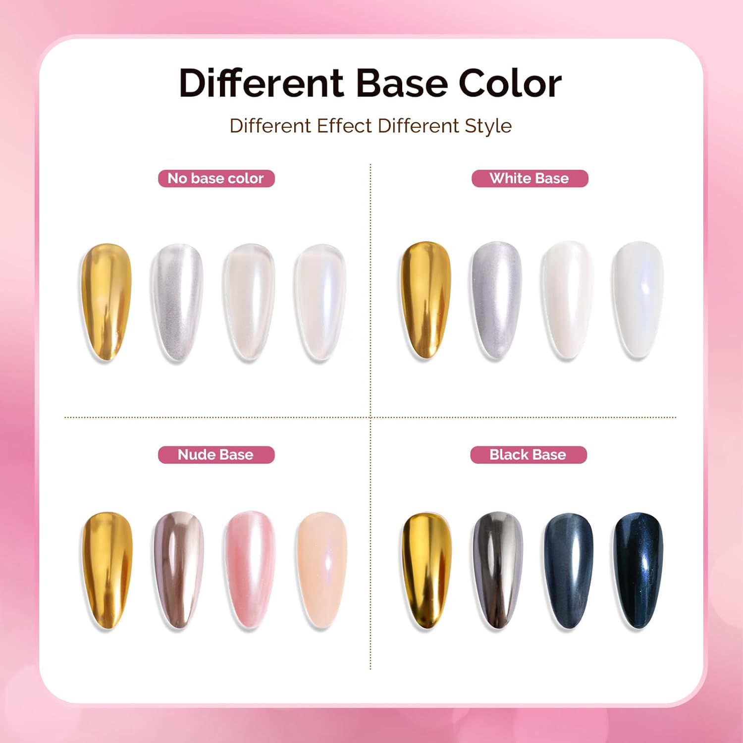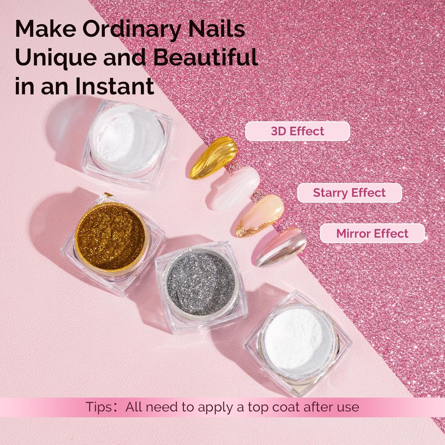 • Wide Range of Applications: Suitable for UV gel nails, acrylic nails,natural nails or false nails.Easy to get a salon grade chrome effect without special techniques.Powder is easy to apply and suitable for beginners