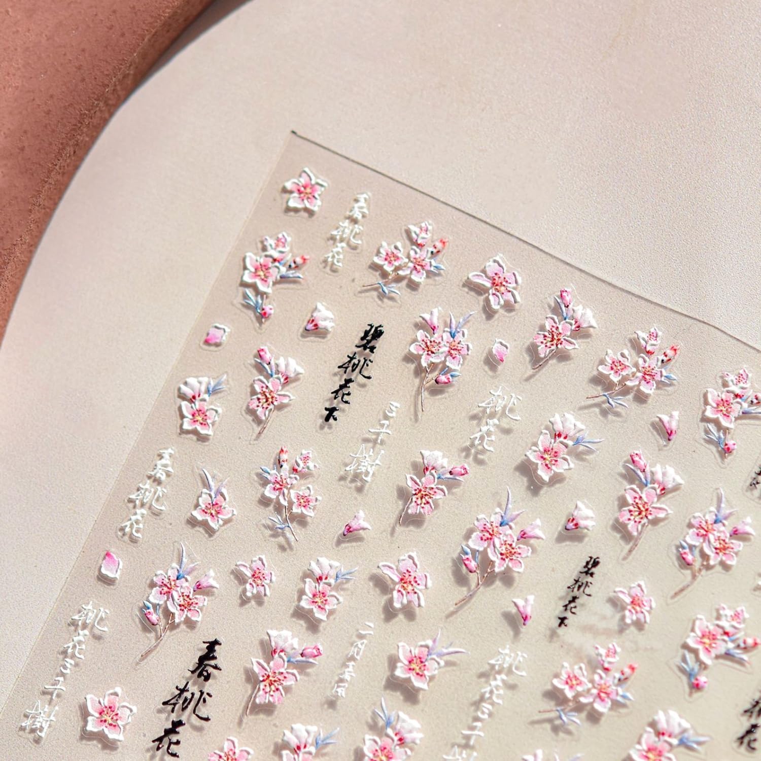 Flower Nail Art Stickers 5D Embossed Spring Nail Stickers for Nail Art White Pink Flower Nail Decals Summer Floral Nail Supplies Self Adhesive Manicure Decoration for Women Girls