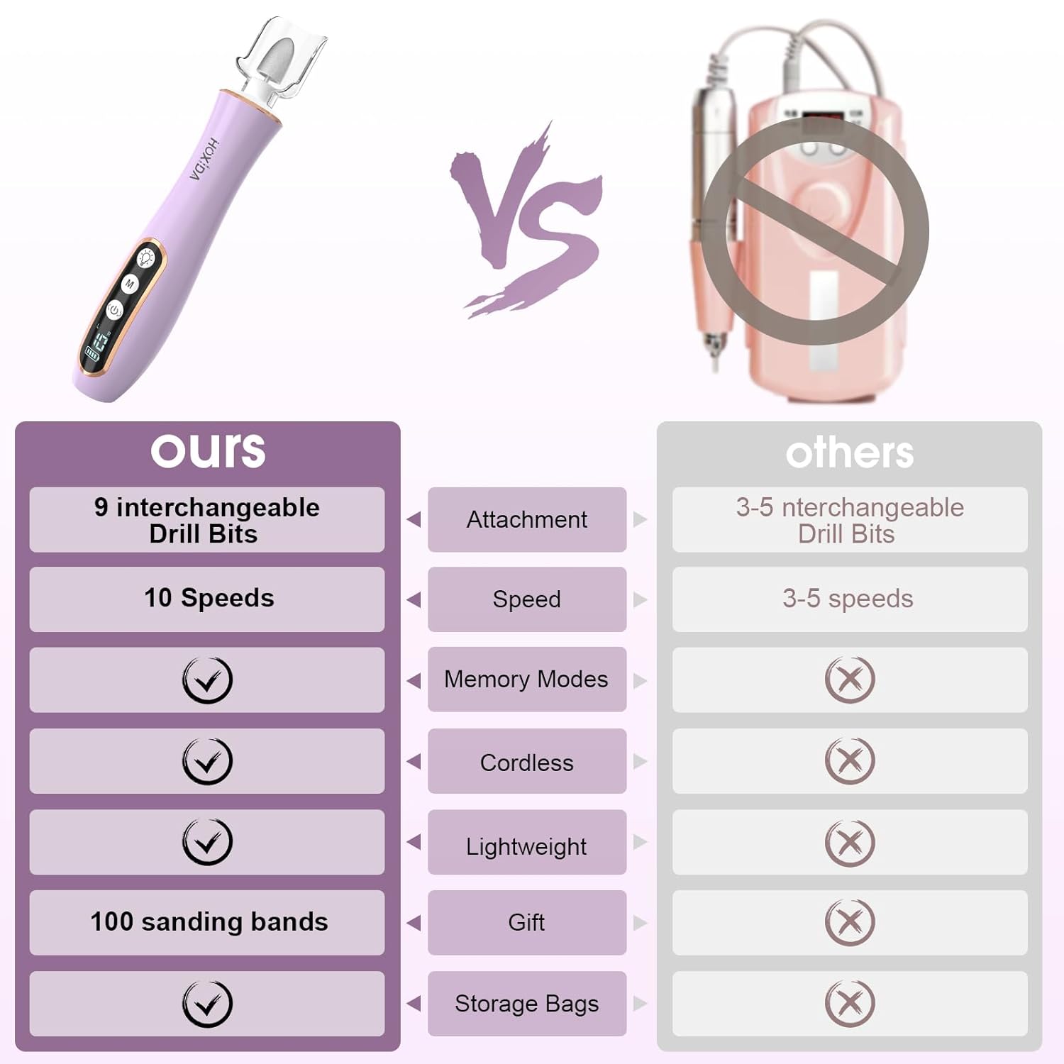 - What you will get: The Electric Nail Drill Kit comes with 9 interchangeable drill bits,100 sanding bands , Type-C charging cable to give your nails a salon-worthy look, this nail kits are the best gift for your nail lovers friends, It's so convenient and you can do a hand or foot care salon privately at home, and everything you need is included.