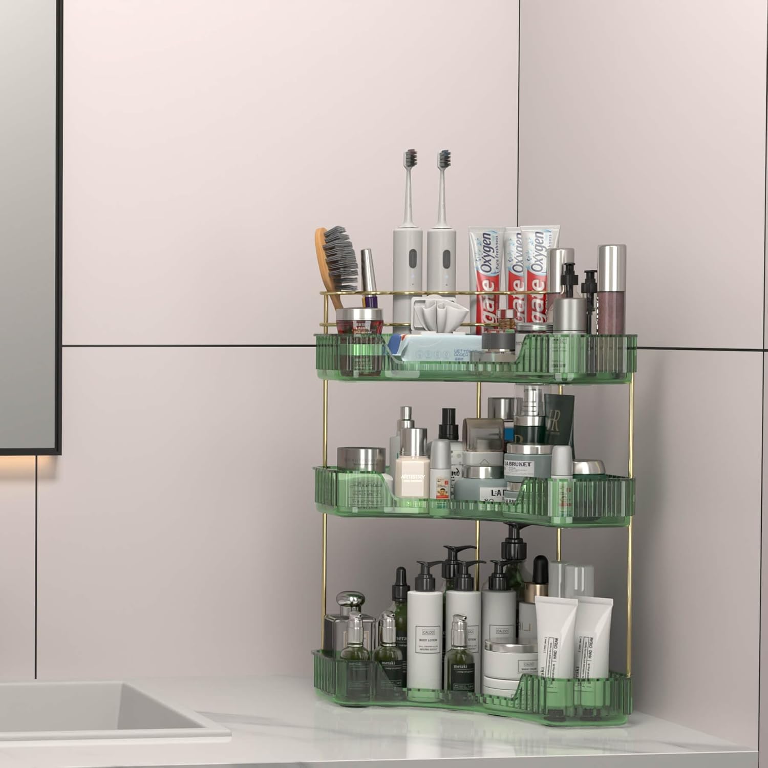 - 【Multiple Size Options Save Space 】The 2-tier design measures 13.6 x 10 x 12.3 inches, while the 3-tier version measures 13.6 x 10 x 18.1 inches. The countertop organizer can effectively save your space. Suitable for various scenarios such as bathroom, kitchen, bedroom, vanity, etc