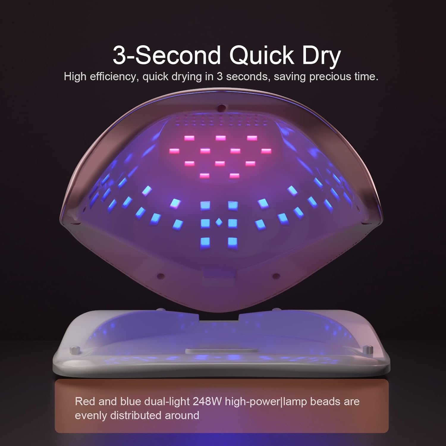 - Efficient Dual-Light Beads – Red and blue LED beads are evenly distributed to ensure smooth, streak-free drying across all nail surfaces.