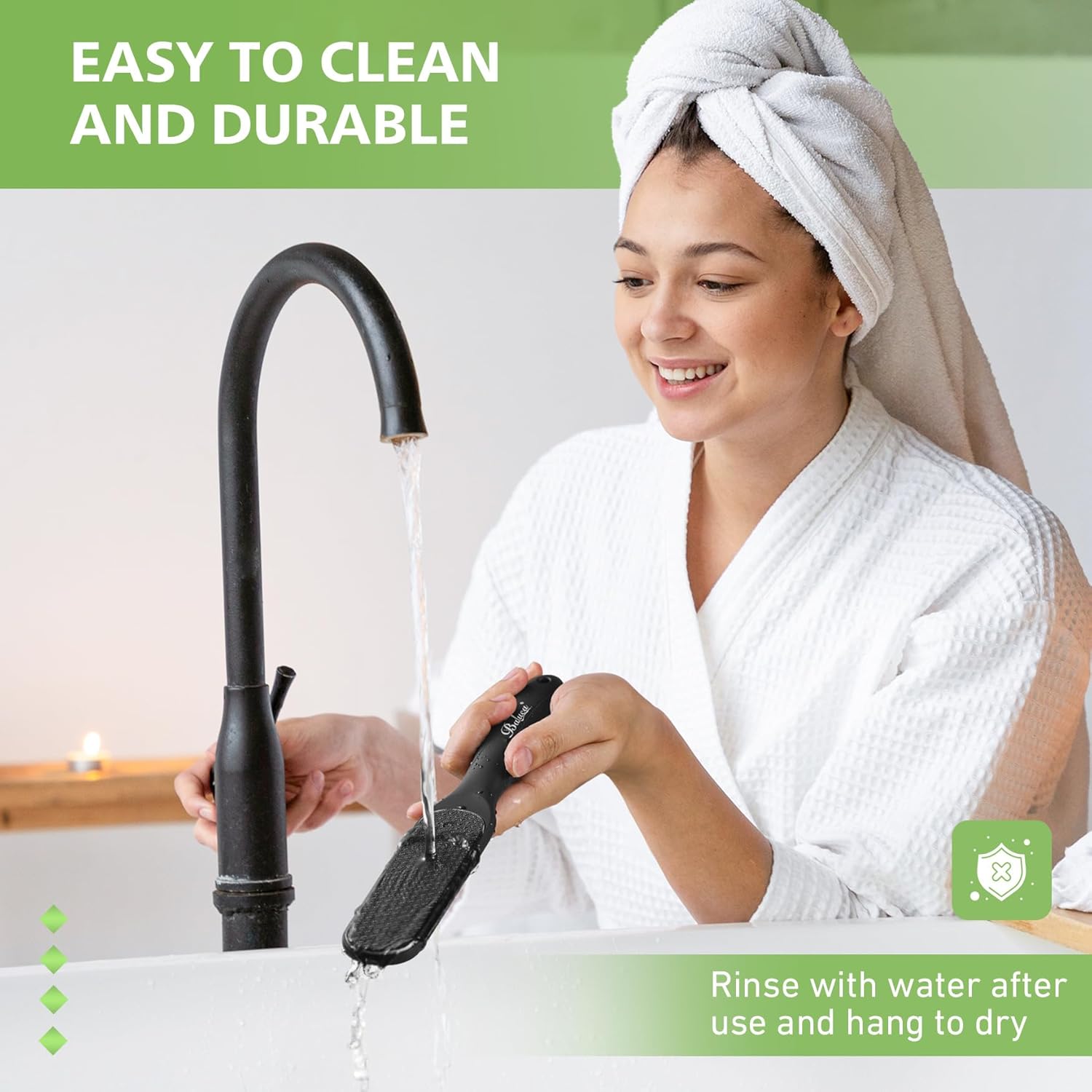 - Easy to Clean and Hygiene: Unlike disposable emery boards or cheap foot files, BALUCA’s glass foot callus remover is built to last years. The Imperforate & Seamless feet scrubber dead skin remover can be clean easily. After use, simply rinse under running water and hang by the handle to air dry.