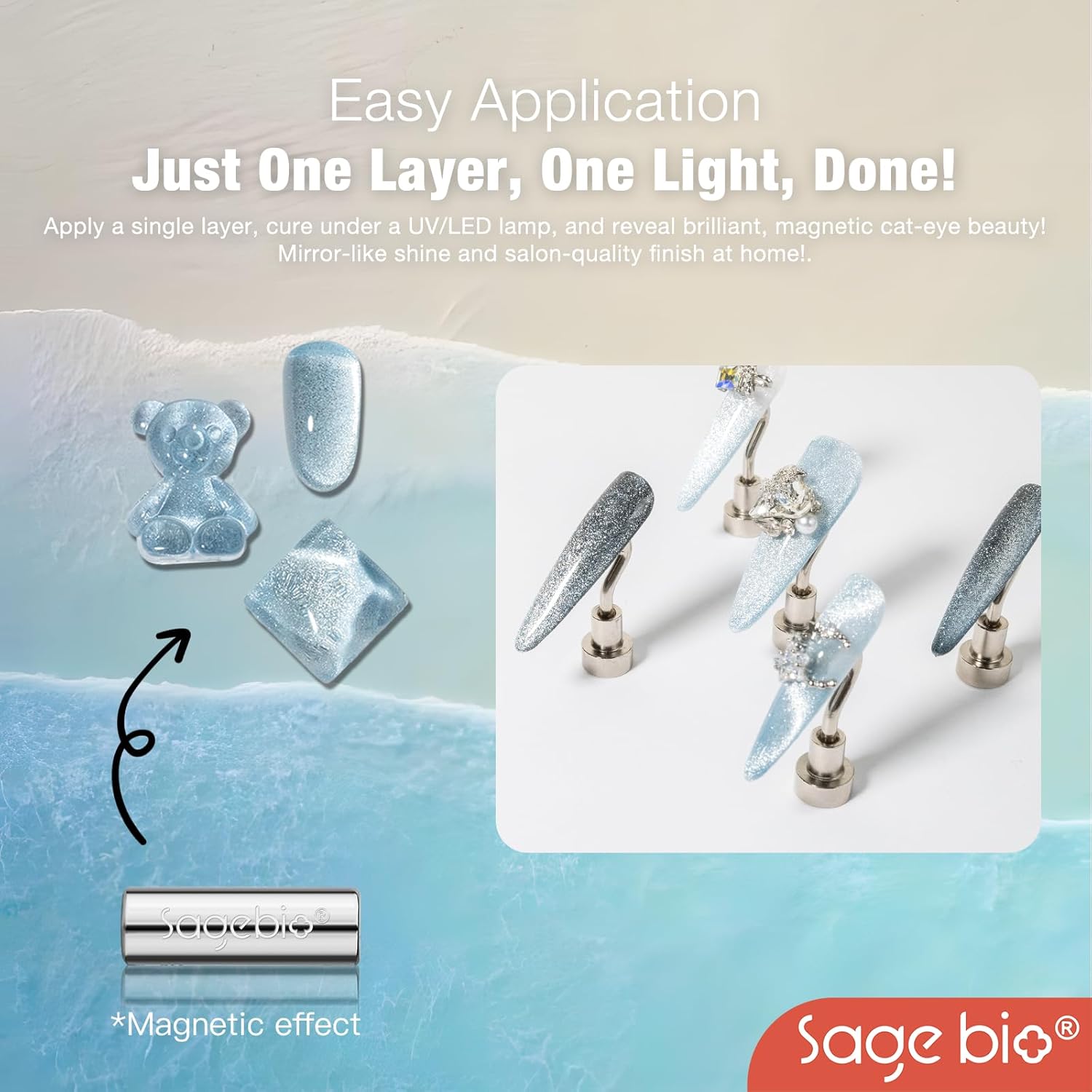 - Multifunctional Formula: SAGEBIOβs Cat Eye Gel Nail Polish combines both the base and color in one easy-to-use formula. No need for additional base or top coats, streamlining your nail art routine.