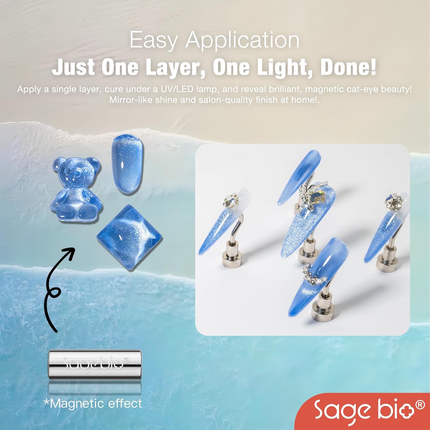 - Multifunctional Formula: SAGEBIOβs Cat Eye Gel Nail Polish combines both the base and color in one easy-to-use formula. No need for additional base or top coats, streamlining your nail art routine.