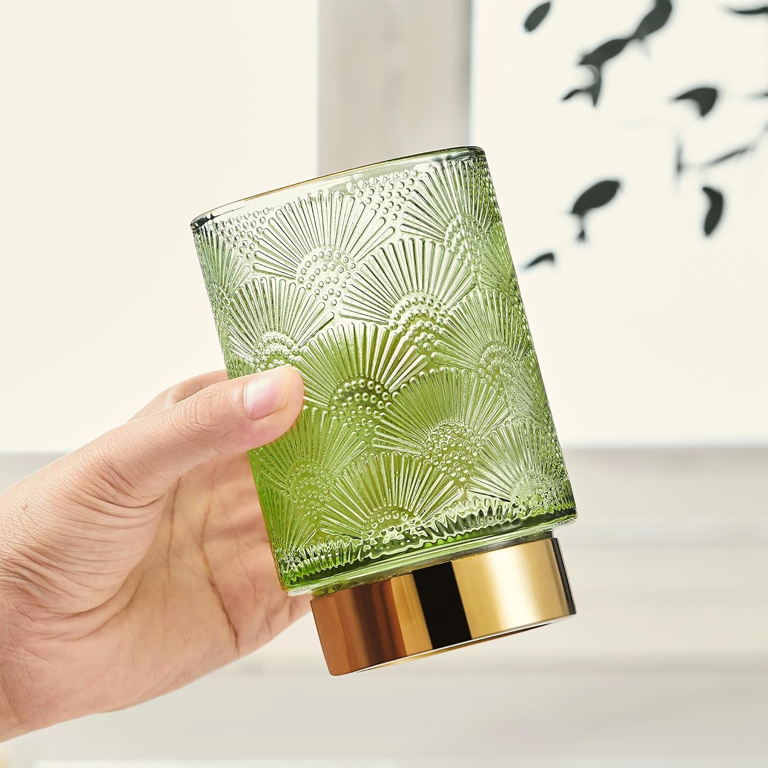 - Exquisite Design: Made of high-quality glass and a golden metal base.Its exquisite striped design on the glass body, complemented by the metal gold plating on the bottle mouth's top edge,sturdy and stylish.