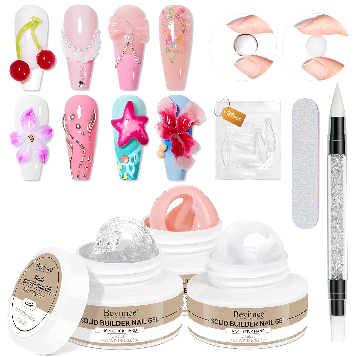 - Multifunction Builder Gel: Bevimee Solid Builder Nail Gel not only can extend nails but also can carve, stick decorate, shape, etc. Mix accessories and glitter to create various styles according to your favorite nail color scheme.