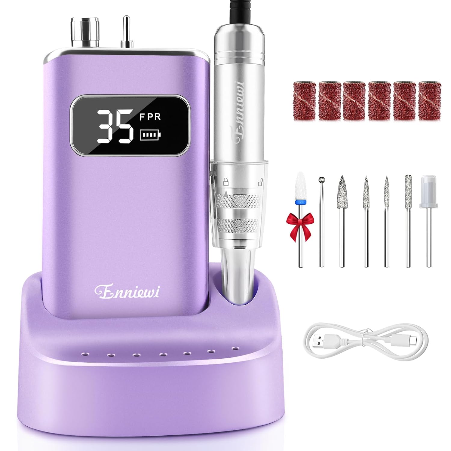 - 【Salon-Grade Power & Professional Nail Drill Kit】Enniewi electric nail drill has a breakthrough upgraded high-torque motor that runs smoothly and quietly even at high speeds of 35,000 RPM. The patented cooling and shock absorbing system effectively dissipates heat, prevents damage to nail surface and cares for sensitive nail edges. Whether you're doing a basic mani/pedi or fine nail art, it can increase operation efficiency by 60%, making salon-quality nail care easy!