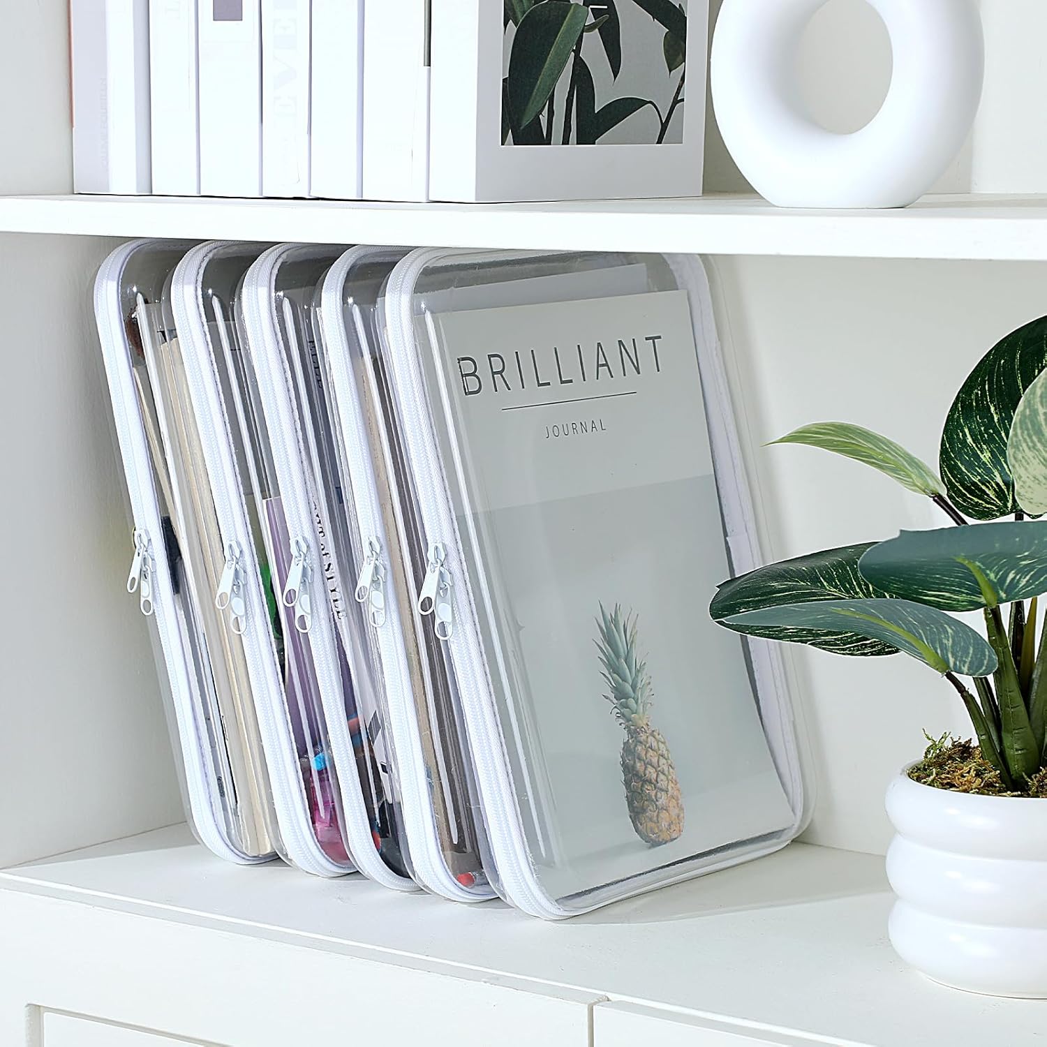 Sanwuta 6 Pcs Clear Hard Zipper Case Pencil Pouches Hard Plastic Zipper Pouches Makeup Bag Transparent Cases for Snacks Plastic Storage Organizer Box for Travel(White,12.6 x 9 x 2 Inch)