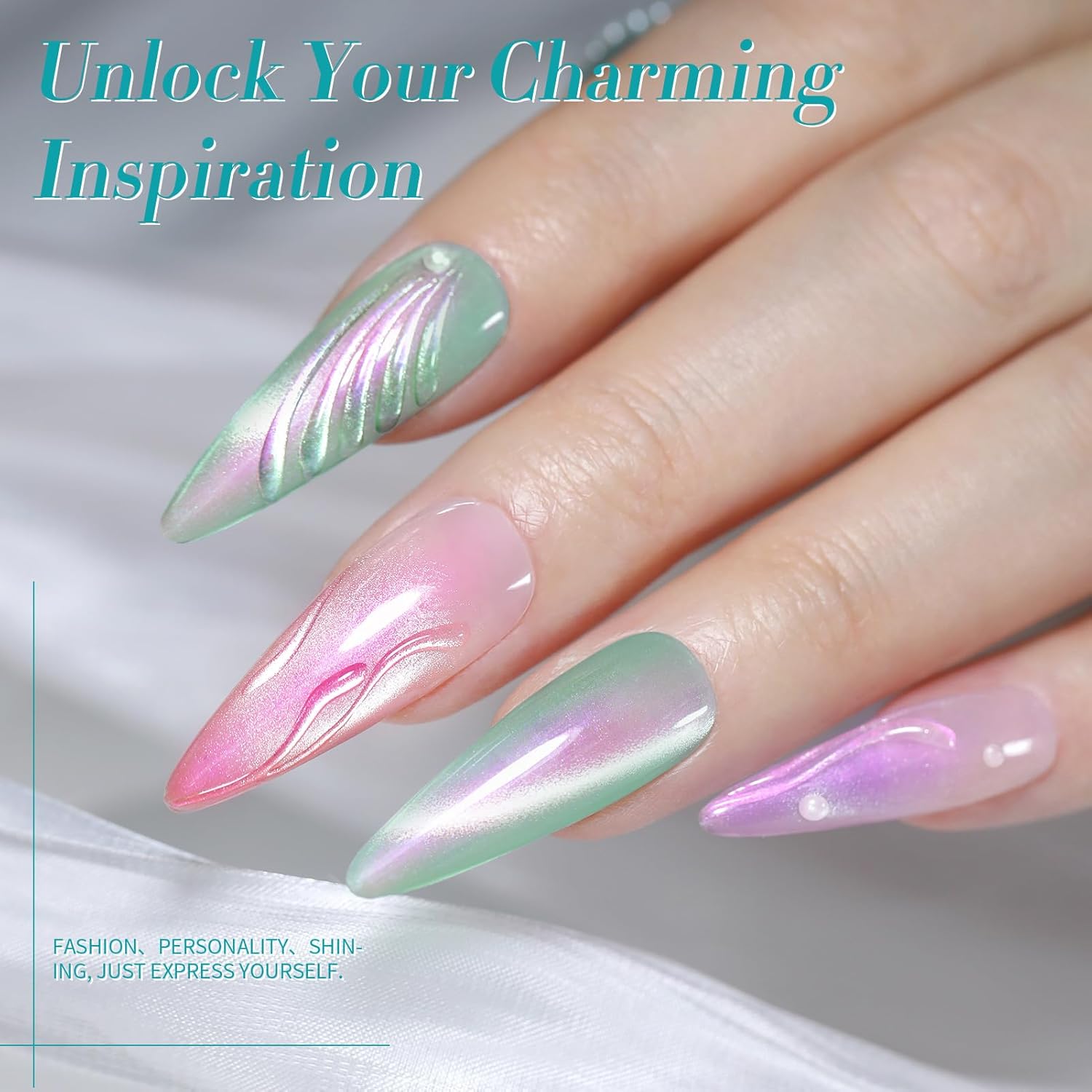 - PACKAGE CONTENTS:6 Bottles pastle cat magnetic gel nail polish gift set .Transparent jelly glass bead texture, super amount of magnetic powder good suction is not easy to run, moist texture, delicate cat's magnetic eye luster, very suitable for spring and summer.