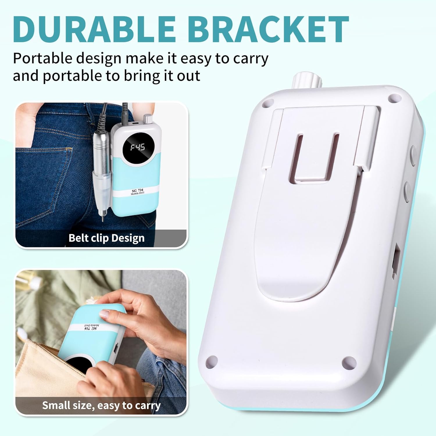 - 【Rechargeable Nail Drill】This portable nail drill built-in 2000mAh high-grade lithium-ion battery with just about 3 hours of charging,can be used for up to 8-10 hours.The smart LCD screen will display the rotational speed and battery remaining capacity,you can use it without worry when styling your nails.