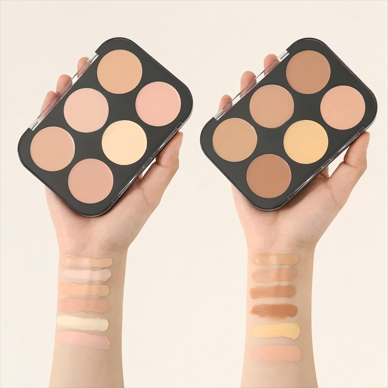 - Professional Color Correcting Concealer: Makeup concealer palette has 6 colors, different colors can professionally solve different problems, free to mix and match and stack the colors, highlighting, retouching and customizing your facial contour areas. This range allows you to mix and match to create the perfect shade that complements your skin tone, whether you're covering blemishes, dark circles, or uneven skin tones.
