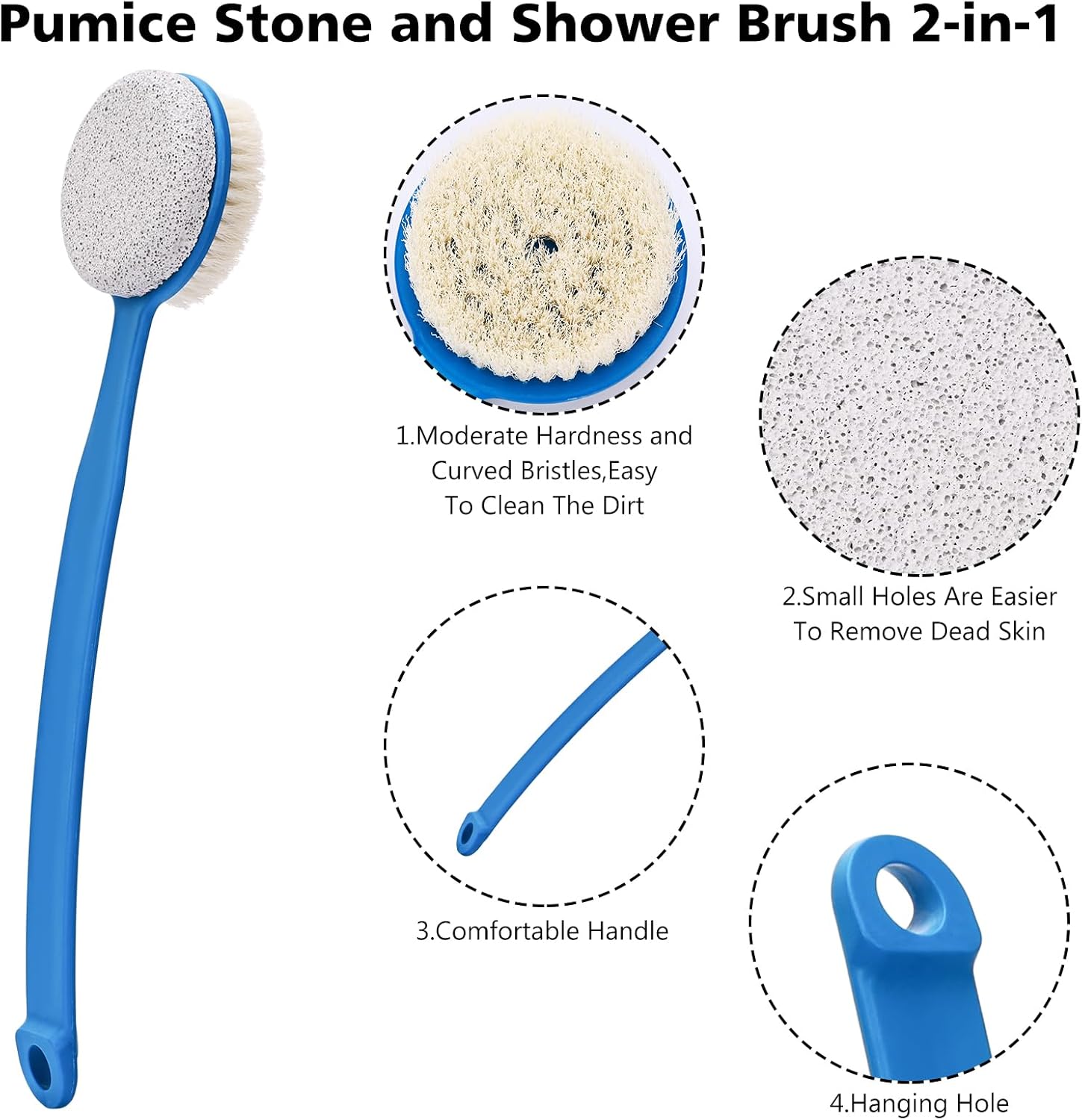 Pumice Stone for Feet with Long Handle (Double-Faced Curved Handle,Blue, Count, 1)