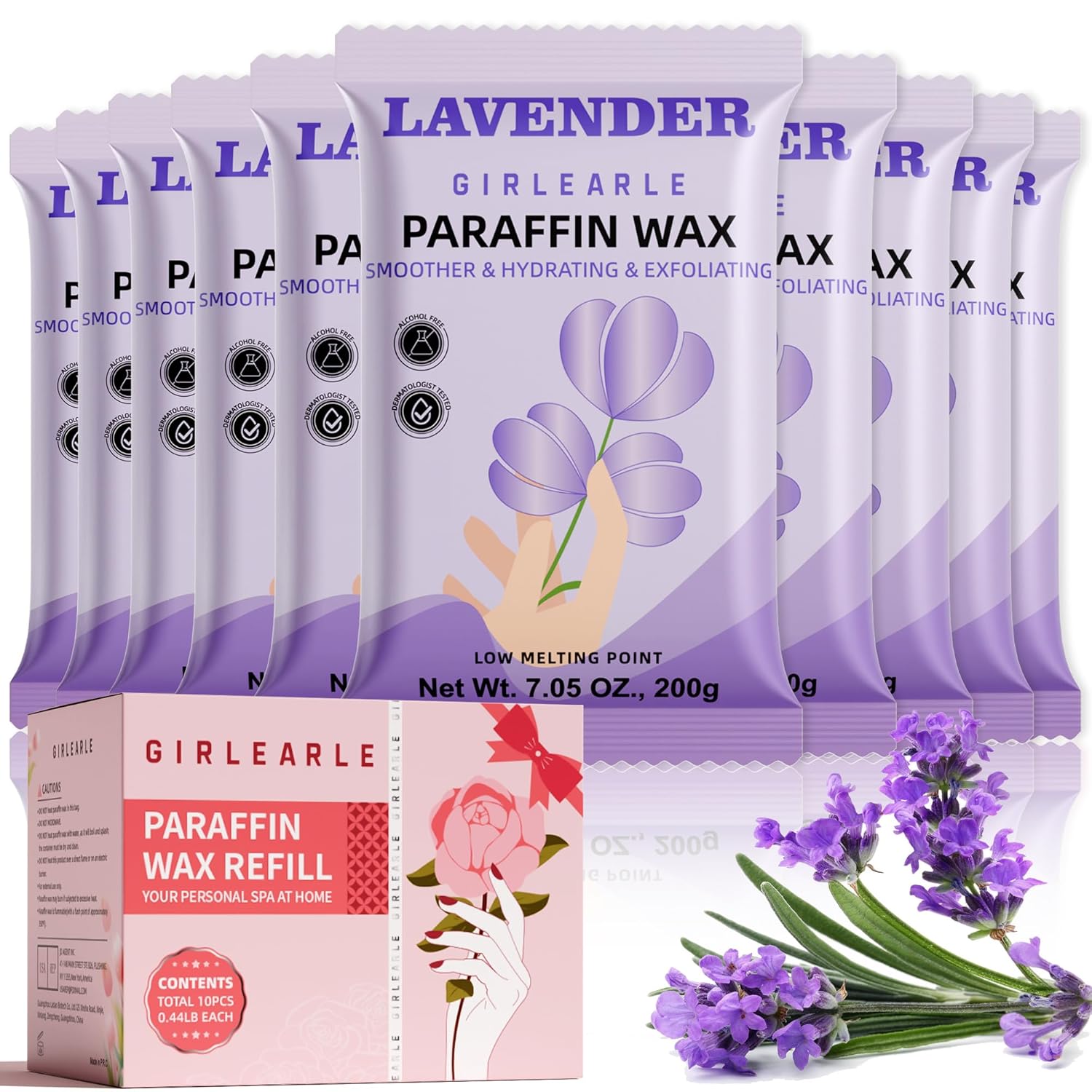 Paraffin Wax Refills 10 Packs for Paraffin Wax Bath Machine - for Dry Cracked Skin on Hands, Feet, Elbows - Moisturizing Hydration to Relieve Stiff Muscles & Joints (Lavender)