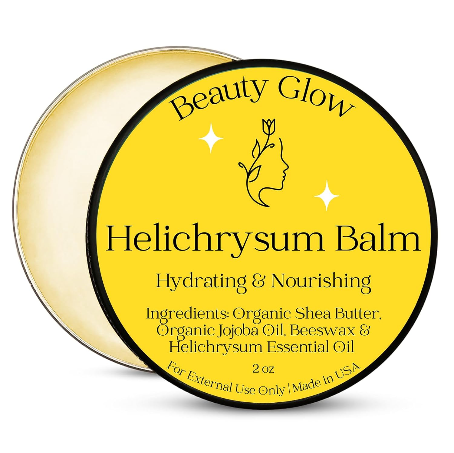 Organic Helichrysum Balm - 2 oz Helichrysum Gymnocephalium, Shea Butter, Beeswax, Jojoba Oil Ultra-Moisturizing, Skin Healing, Full Body Hydration