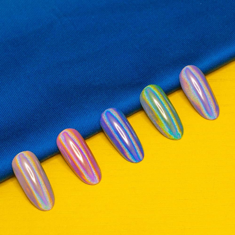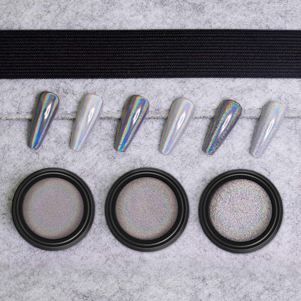 Artdone 3jars Holographic Chrome Nail Powder 1Gram Each, Unicorn Holo Rainbow Mirror Effect 20um 35um 65um Nail Pigment kit For Gel Polish Nail Art crome Set