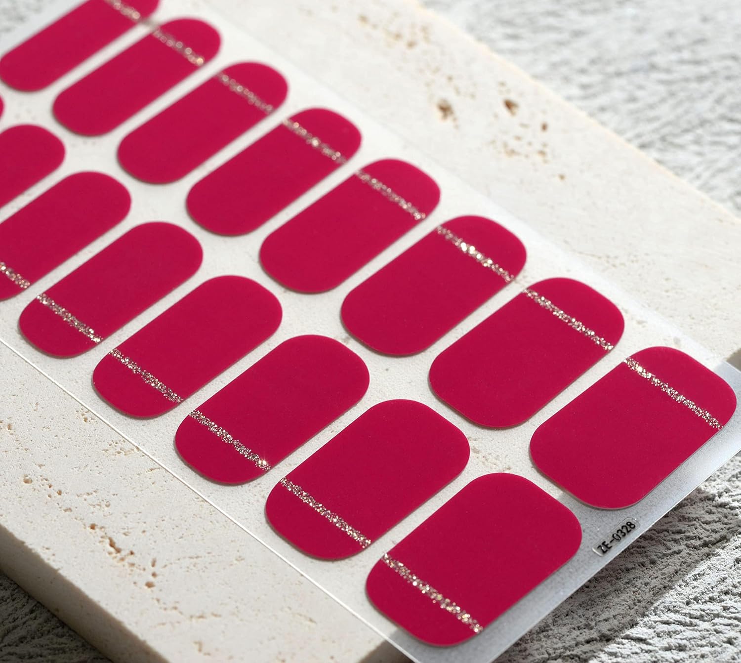 Nail Polish Strips, 32PCS Salon Quality Wraps, Long Lasting Gel Nail Stickers for Women Easy Apply& Remove (Berry Rhapsody Dark Red)