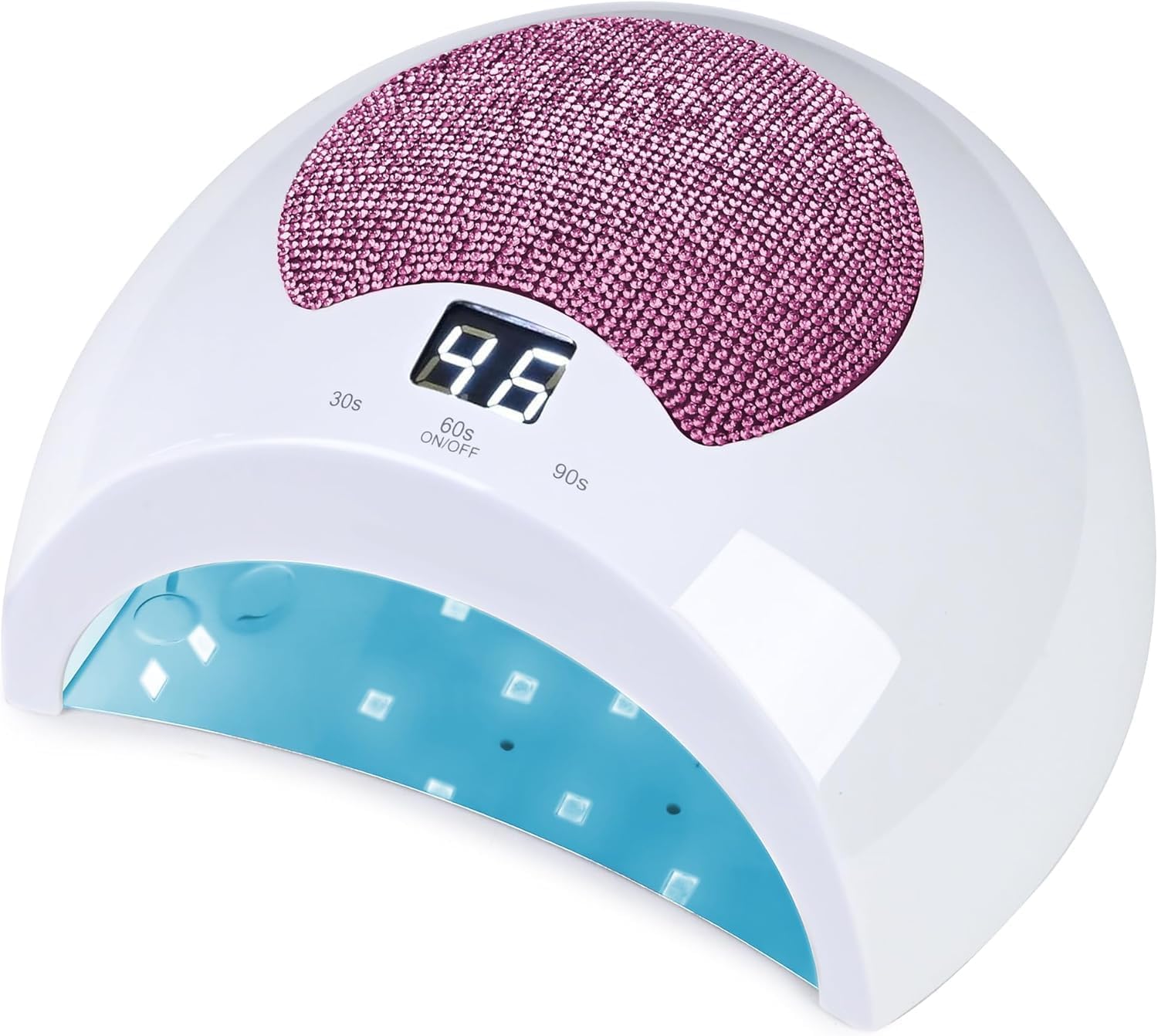 Rechargeable UV LED Nail Lamp with Diamond Design & Touch Control - 3 Timer Settings, Fast Curing for All Gel Polishes, Portable UV Nail Dryer for Professional Salon & Home (Pink)