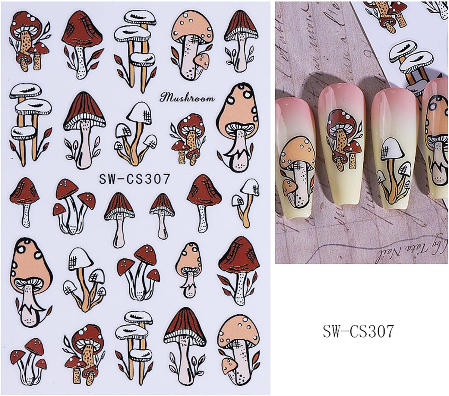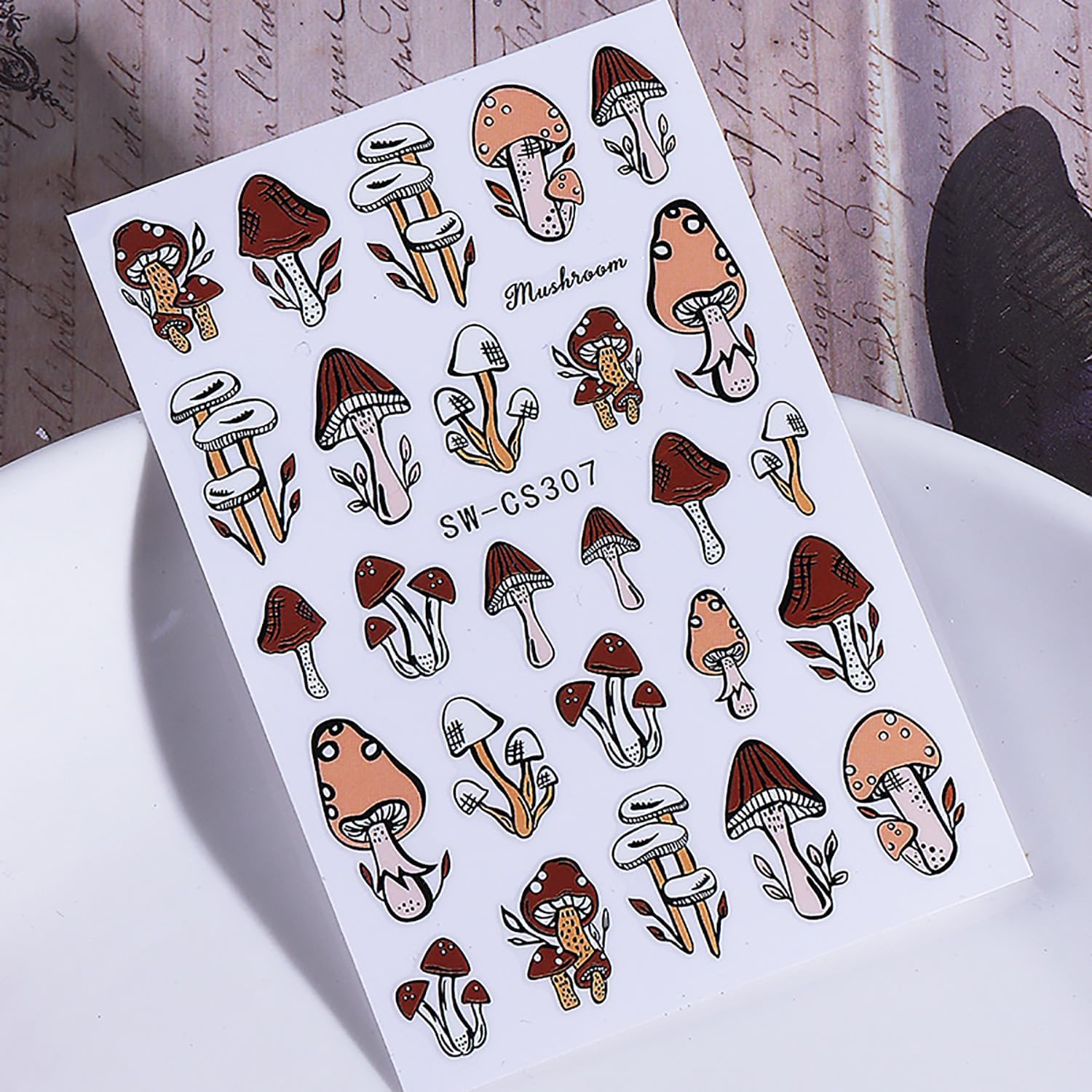 - Package Contain: You will receive 4 sheets of Halloween nail stickers mushroom ghosts design in 3.54×2.56in, catering to your rich imagination for daily nail DIY and uplifting your mood