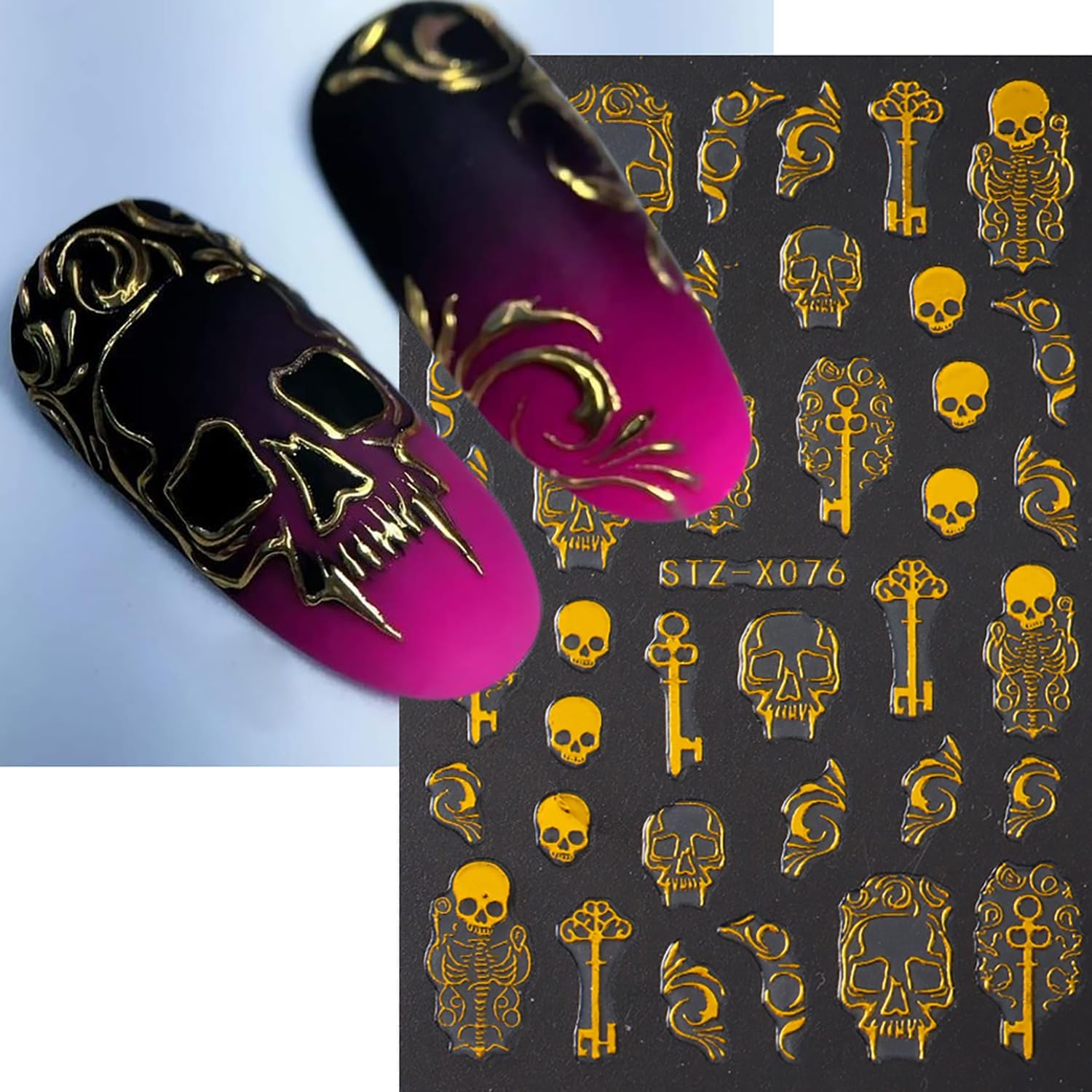 • Package Contain: You will receive 6 sheets of Halloween nail art decals golden skull spider web ghosts design, catering to your rich imagination for daily nail DIY and uplifting your mood
